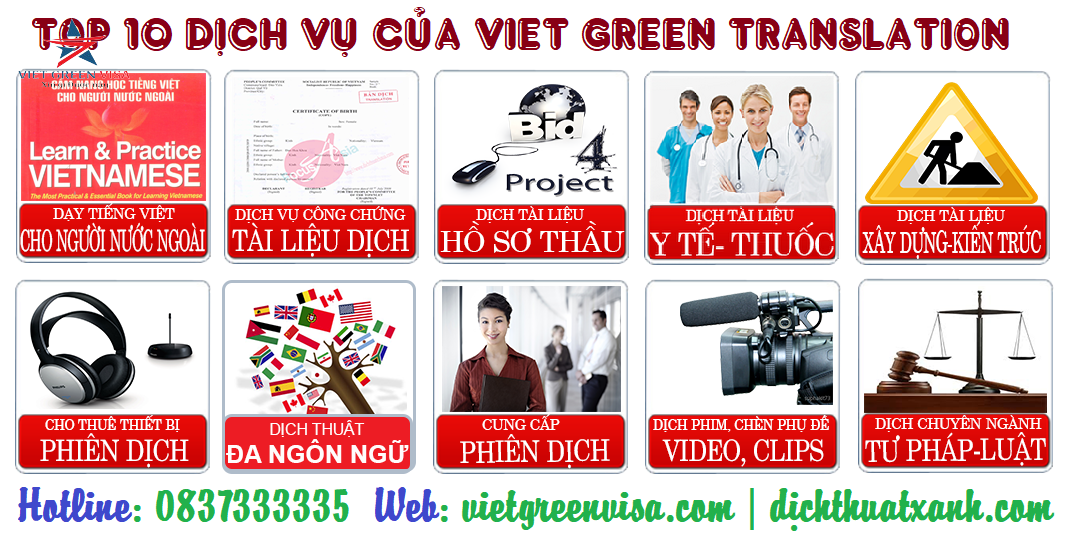 Tham khảo bảng giá dịch thuật công chứng tại Viet Green Visa / Viet Green Trans. đối với một số ngôn ngữ phổ biến: