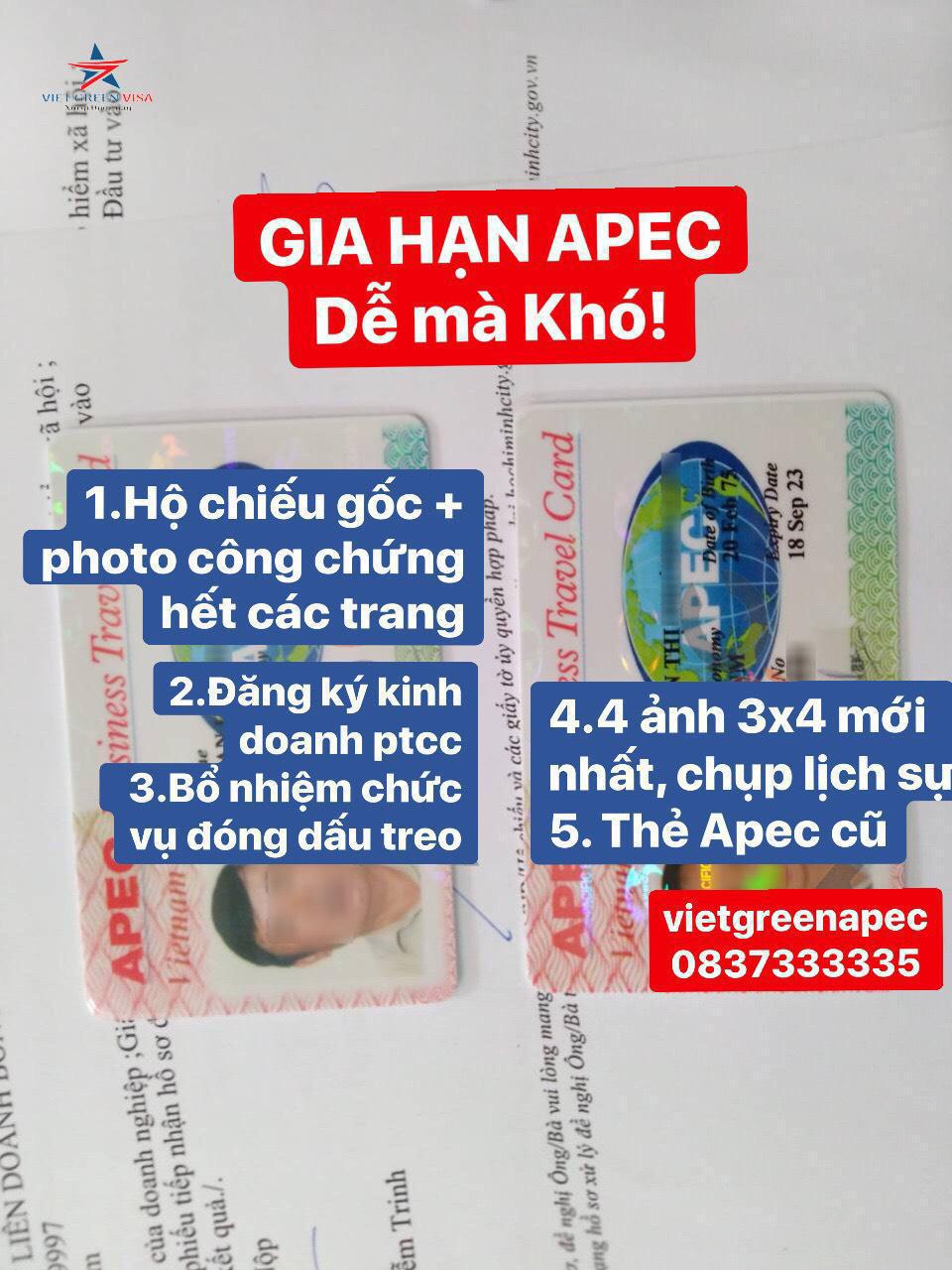 Gia hạn Thẻ Apec (hay còn được gọi là gia hạn thẻ ABTC – Apec Business Travel Card) là loại giấy tờ do cơ quan Nhà nước có thẩm quyền cấp gia hạn lại cho các doanh nhân tại các quốc gia và vùng lãnh thổ tham gia Chương trình thẻ đi lại của doanh nhân để tạo thuận lợi cho việc đi lại làm ăn, hợp tác kinh doanh, tham dự các hội nghị vì mục đích kinh tế trong khuôn khổ phạm vi các nước Apec.