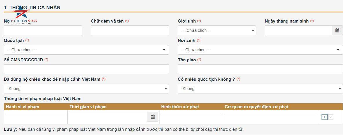 VietGreen visa hỗ trợ thủ tục khai thông tin xin Evisa cho người nước ngoài online. Một số thông tin cần cung cấp: