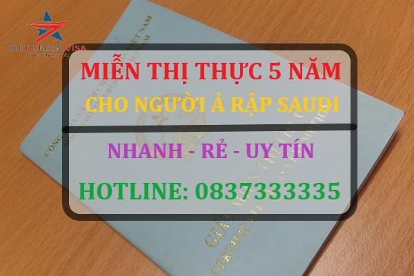 Dịch vụ làm Giấy miễn thị thực 5 năm cho người Ả Rập Saudi tại Việt Nam (còn được nhiều người gọi là visa 5 năm, hoặc giấy miễn thị thực 5 năm, tiếng Anh là Vietnam 5-year visa exemption certificate) vào Việt Nam được cấp cho đối tượng là người Ả Rập Saudi có vợ/ chồng/ con của công dân Việt Nam; hoặc người Việt Nam định cư ở Ả Rập Saudi. Giấy miễn thị thực này giống như một loại visa dài hạn, và người được cấp, được phép nhập cảnh vào Việt Nam bất kỳ thời điểm nào trong hiệu lực 5 năm. Khi làm Giấy miễn thị thực, Giấy miễn thị thực cho người Ả Rập Saudi, Giấy miễn thị thực 5 năm cho quốc tịch Ả Rập Saudi, Viet Green Visa uy tín xin liên hệ 0837333335