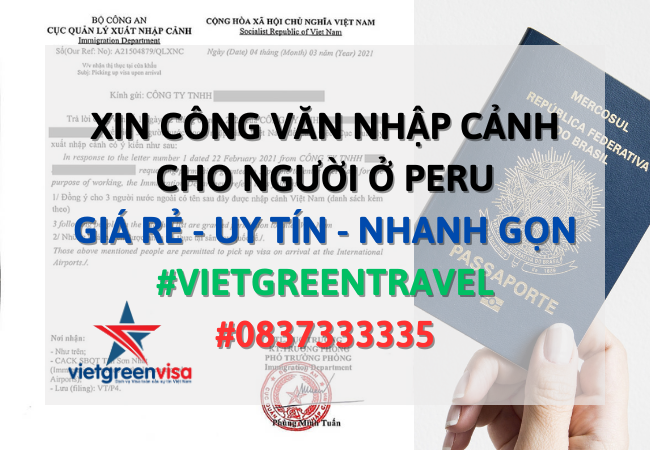 Dịch vụ làm công văn nhập cảnh Việt Nam cho người Peru, Viet Green Visa, Công văn nhập cảnh cho người Peru, Dịch vụ công văn nhập cảnh cho người Peru tại thời điểm này.Vietgreenvisa chuyên Công văn nhập cảnh Việt Nam cho người Peru, Xin công văn nhập cảnh Việt Nam cho quốc tịch Peru, Công văn nhập cảnh cho người Peru, Dịch vụ công văn nhập cảnh cho người Peru