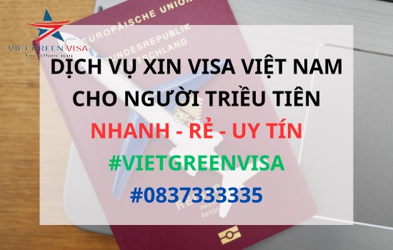 Xin visa Việt Nam cho người Triều Tiên tại Viet Green Visa vô cùng tiện lợi, nhanh chóng và tiết kiệm. Viet Green Visa hơn 10 năm kinh nghiệm cung cấp dịch vụ làm visa Việt Nam cho công dân Triều Tiên vào Việt Nam an toàn. Nhanh chóng đăng ký dịch vụ xin visa Việt Nam cho quốc tịch Triều Tiên tại hotline +84.837333335 hoặc email: vietgreenvisa@gmail.com. Sau đây là những hướng dẫn chi tiết cách xin visa Việt Nam cho người Triều Tiên nhập cảnh Việt Nam du lịch hoặc công tác mà hàng nghìn khách hàng đã lựa chọn.