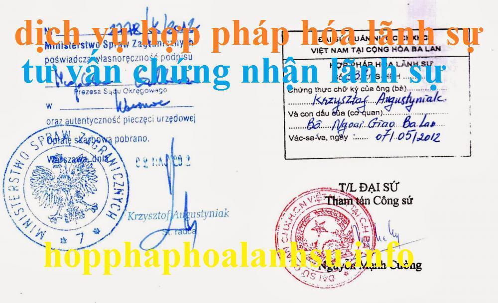 - Dịch thuật các văn bản đã được hợp pháp hóa. Sau đó hợp pháp hóa bản dịch tại Bộ Ngoại giao Việt Nam (Cục Lãnh sự) hoặc Sở Ngoại vụ TP Hồ Chí Minh (Phòng Lãnh sự).